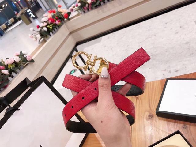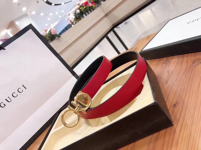 Ferragamo Italy专柜同款在售 種草拔草都要自留款 進口原版皮制作 搭配原版Gancio五金 2.5Cm规格 可调式皮带 看图下单 双面可用 。赠送