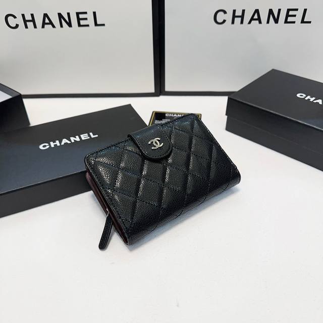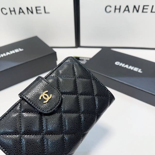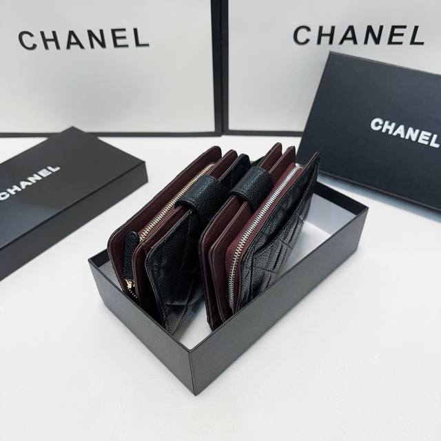 / 颜色 黑金 黑银尺寸 15X10经典小香两折钱包已出货 采用进口鱼子酱牛皮 菱格绣花 手感柔软 ,10个卡位,一个金属拉链袋,多个隔层!时尚大方