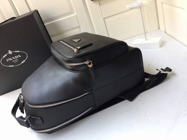 独家首发最新双肩背包2Vz032原单货采用进口Saffiano皮革材质,金属五金配件,两条背带式皮革背带一条皮革提手,背面口袋,又可以插在拉杆箱上带双向拉链,两