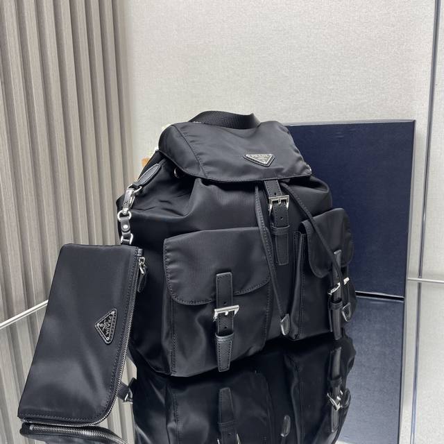 顶级原单 新款背包1Bz811新色这款尼龙双肩包采用精致Saffiano皮革饰边,融合多种材质,并饰有三角形徽标,彰显时尚优雅魅力。另配有可拆卸的小手包轻便又实用,上身效果超有范,又随意搭配全面升级尼龙面料尺寸:长30X高32X底15Cm