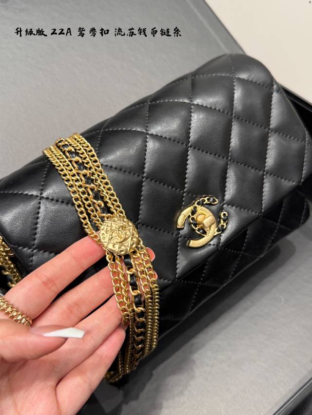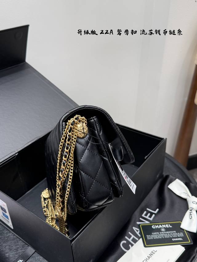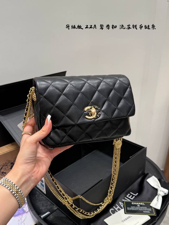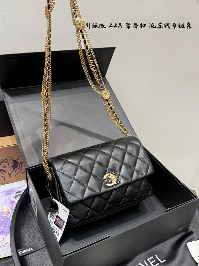 礼盒包装升级版!香奈儿Chanel钱币流苏Cf,绝美黑金香奈儿鸳鸯扣金币多层链条这高级感拿捏了Chanel钱币流苏Cf方胖子风琴包的组合既有容量又经典不管是日常