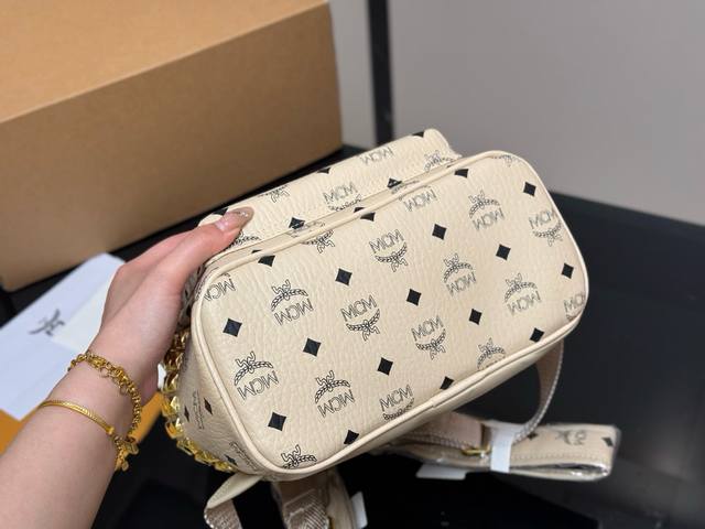 / 配飞机盒Mcm经典双肩包立体而自然 对花剪裁以中轴为对称中心线的上线倒向对称,十分完整完美,尤其包型 超有弧度感的!尺寸: 21*27Cm 小号 26*33Cm