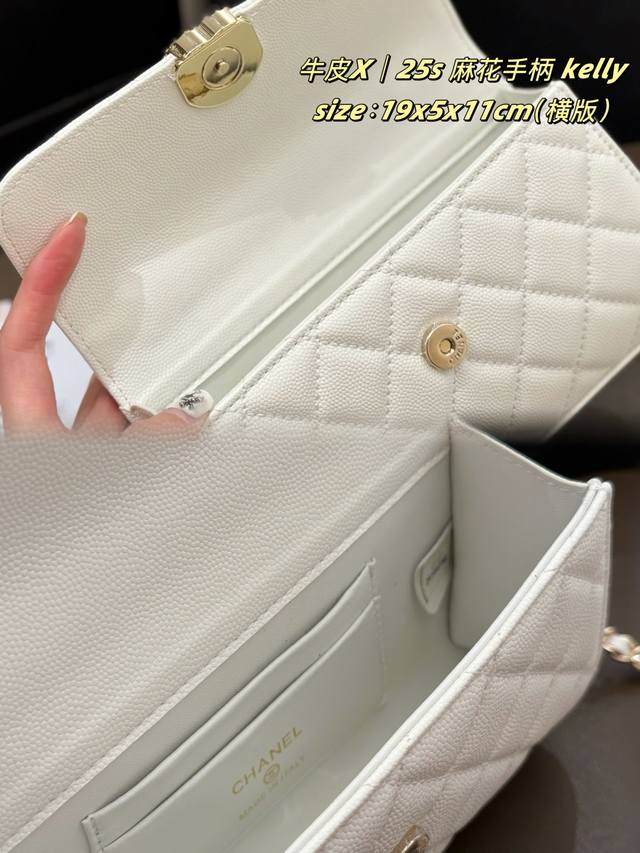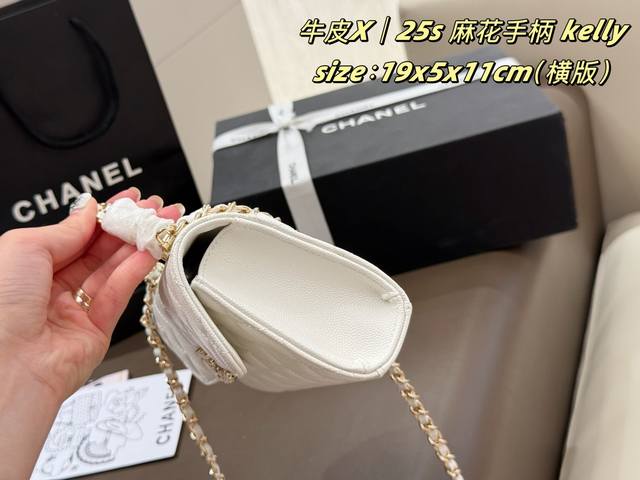 牛皮 双盒包装Chanel 25S Kelly 麻花手柄 横版这一季一定要买的Kelly时髦、皮穿链交错的手柄绝美了横版翻盖的设计复古高级感满满,手感也是一级棒!无论是单肩还是手提 都能轻松驾驭各种场合!不仅外形美得让人窒息,而且内部空间也非常实用,能够轻松装下日常生活所需物品~Size:19X5X11Cm