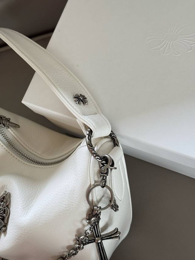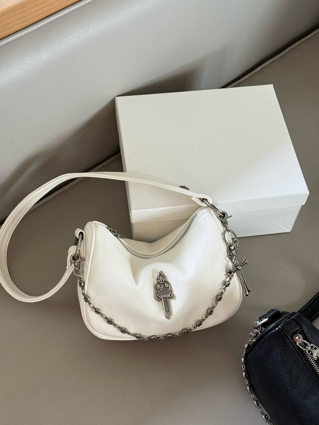 配盒 Size:19×12 克罗心chrome Hearts链条腋下包 帅酷帅酷的腋下包 很中性风 个性化五金很飙很野性~ 皮质超软,实用性很强