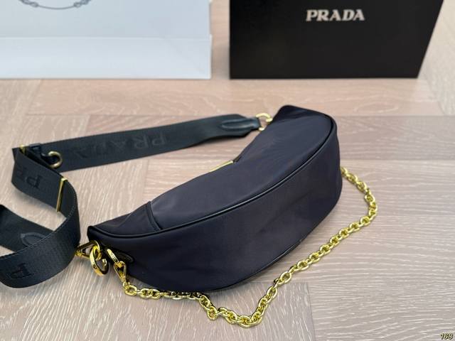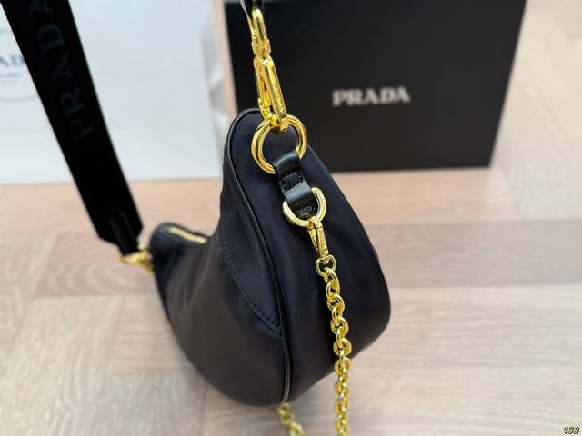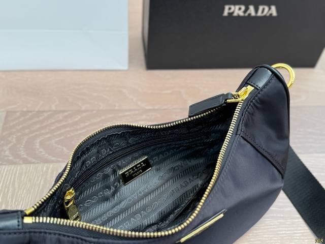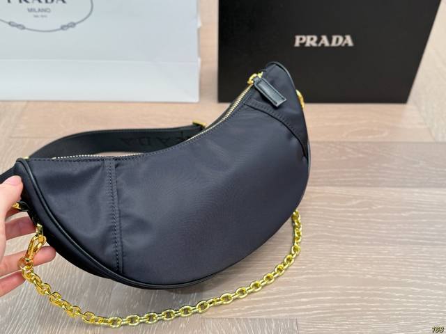 配盒子 Size:22*13Cm Prad Hobo 尼龙腋下包 看到实物真的堪称完美! 包装 设计超级方便和舒服! 皮手柄 配根链条,绝绝子!