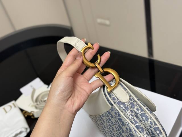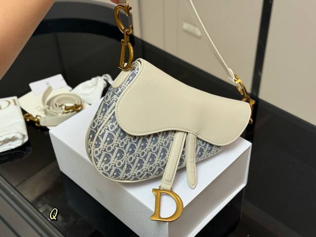 / 配折叠盒尺寸:25Cm*20Cm大号 升级版出货 迪奥牛仔蓝马鞍包配宽皮肩带 品质太Ok 搜索Dior 迪奥