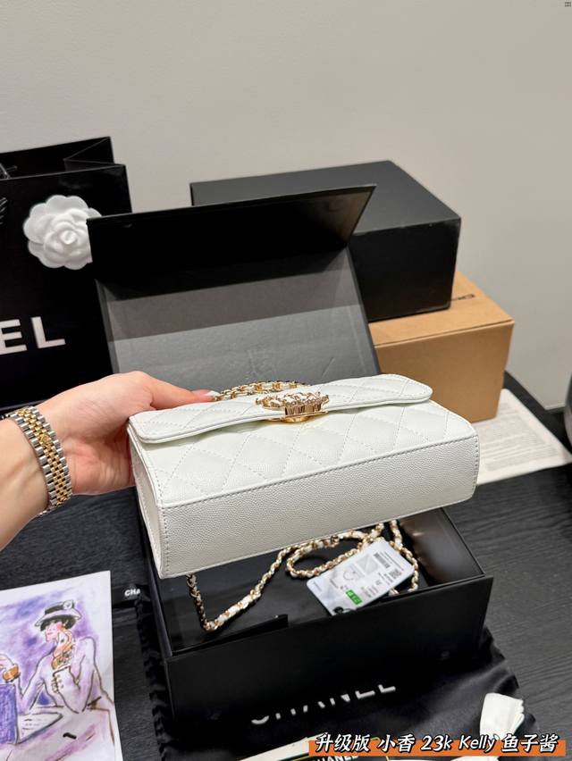 礼盒包装升级版 鱼子酱Size:19*10Cm 横版 Chanel香奈儿 23Kelly横版链条包金属编织手柄这个包型就是一整个爱住小Kelly 香奶奶 精致可爱 可以放手机可以手拎可以斜挎还是鱼子酱牛皮太完美了!