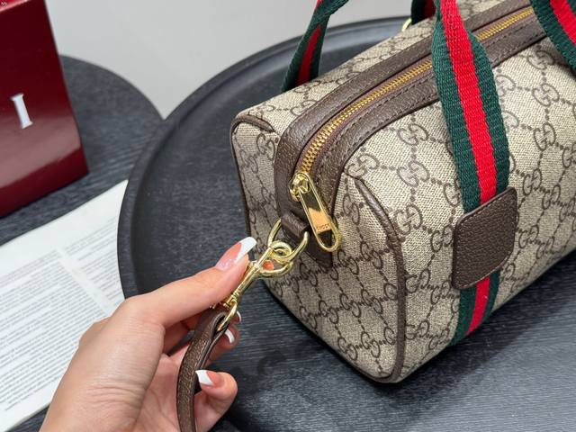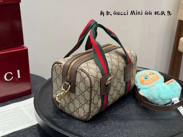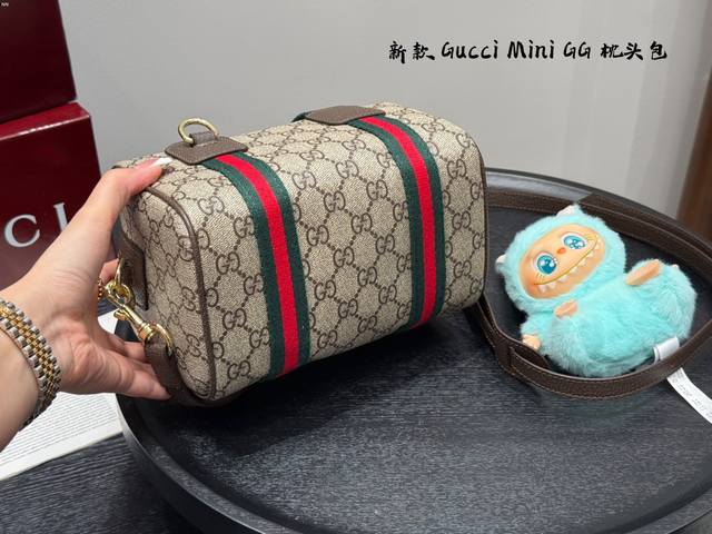 折叠礼盒搭配拉布布挂件新款来袭 Gucci Mini Gg波士顿 新品枕头包经典双G老花+标志性绿红绿织带采用Ggsupreme Tende材质打造细节满满又轻巧好背复古和时髦狠狠拿捏Size:20*14Cm