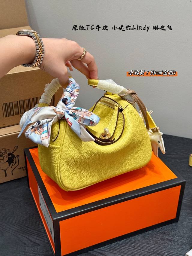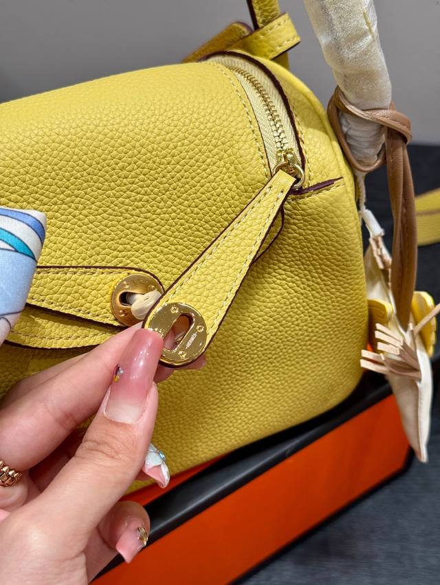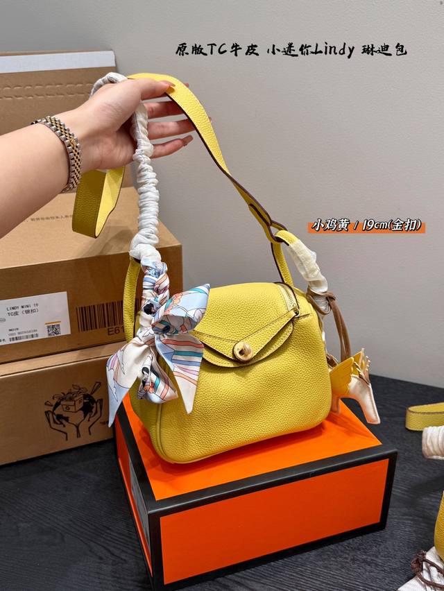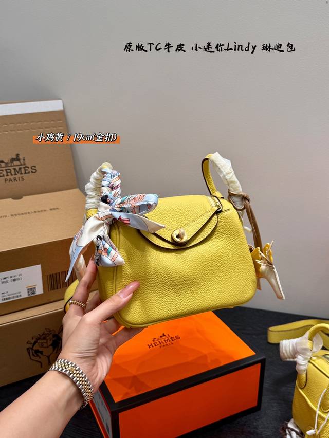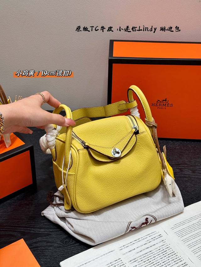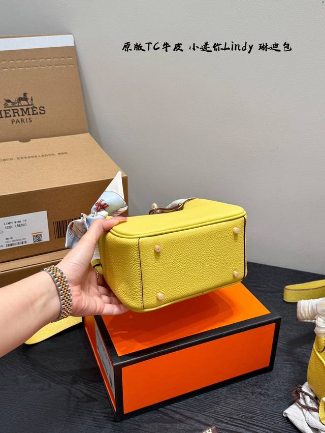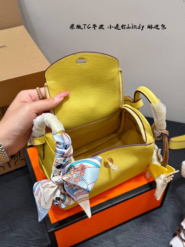 配全套包装原版头层Tc牛皮Size:19*13Cm爱马仕 Lindy琳迪小迷你Mini采用头层小牛皮定制五金&半手缝莎菲线斜挎 手拎!高级优雅又带点可爱赠送丝巾