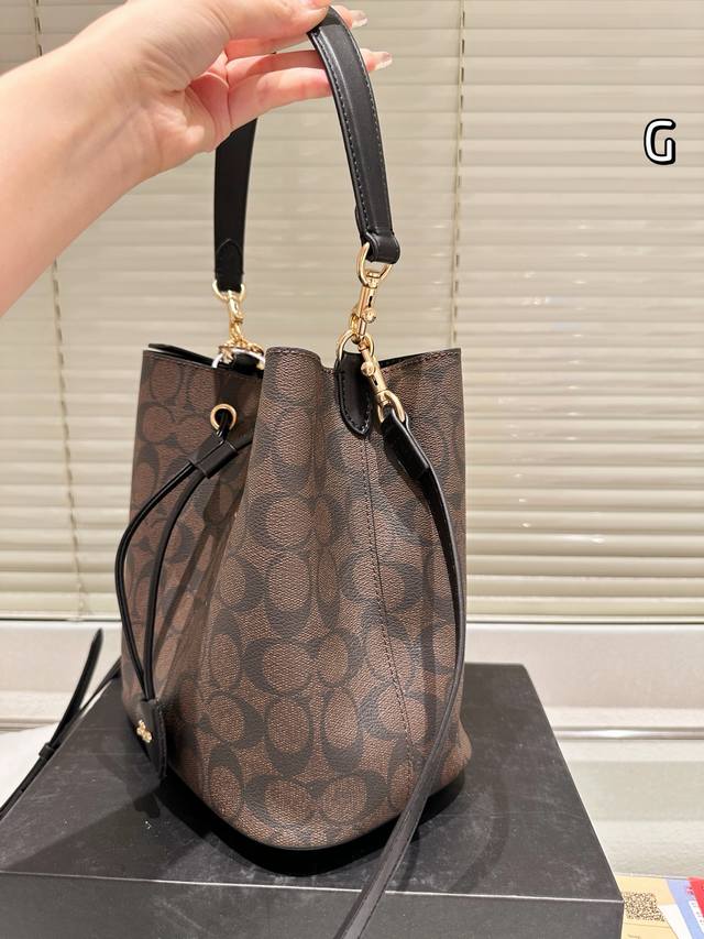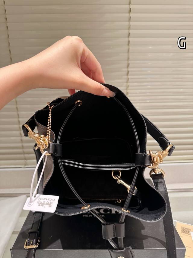 牛皮版本 Coach Rowan 水桶包 作为一款出色的全能单肩包,尺寸不会太大或太小,可妥善收纳日常所需物品。采用拋光鹅软石纹皮革制作,并井有条的内部空间包含一个拉链隔层、两个开放式隔层以及一个小型所需物品口袋。流线型的水桶包造型带有安全的经典标志旋锁扣件,既可手提,也可肩背或斜挎。 尺寸20.21Cm