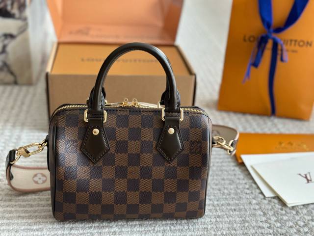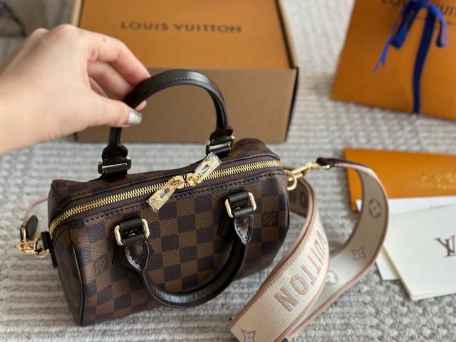 / Lv女包包 路易威登Speedy N40489 本款Speedy Bandouliere 20手袋取材经典Damierebene帆布,搭配沉稳皮革饰边和织物肩带