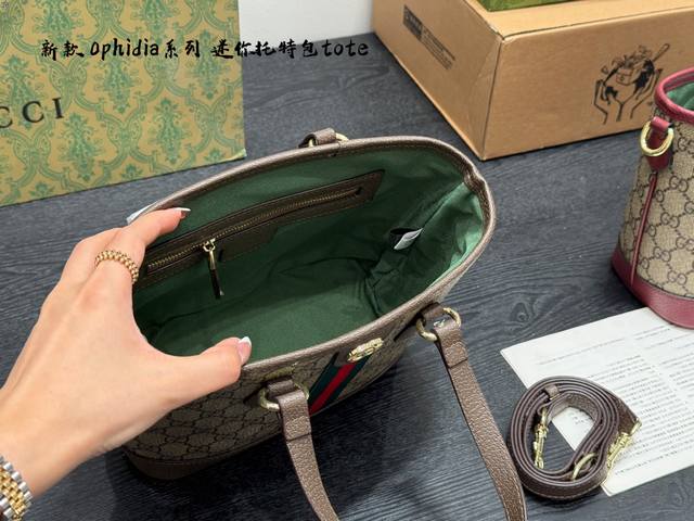/ Gucci 托特购物袋 迷你古奇发现一-款可以随便一塞就出门的酷奇Ophidiatote购物袋,一定是最适合洒脱随性的小仙女了,尺寸: 小号21.18Cm
