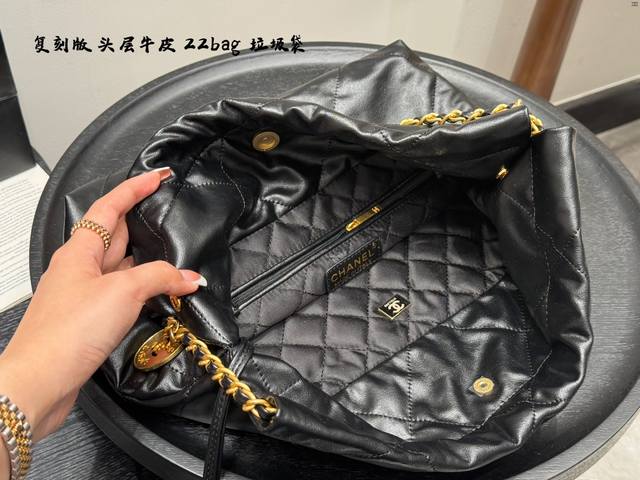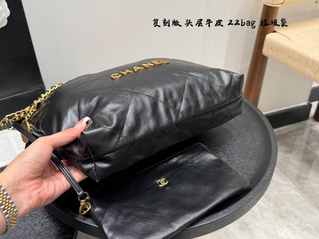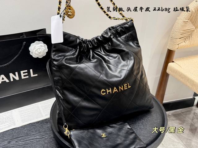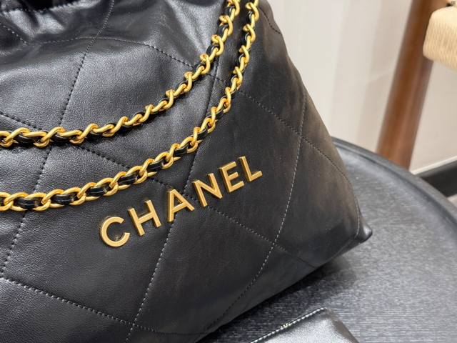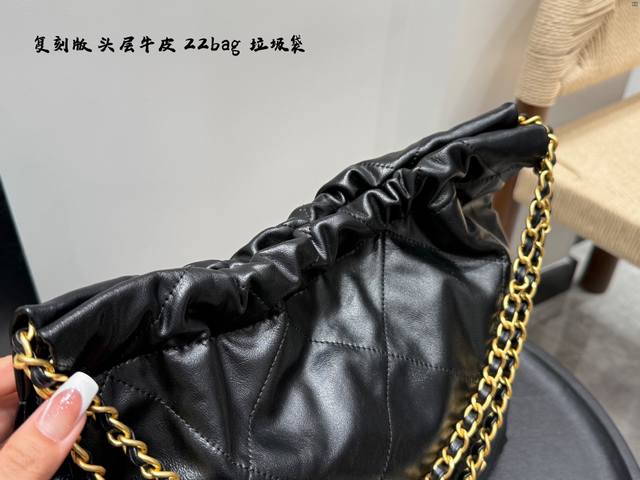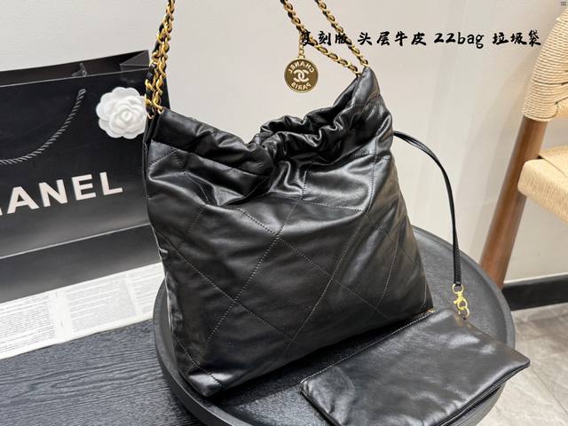 礼盒包装复刻版 原版皮尺寸32.35 小号 35.42 大号 香奈儿 24C 22Bag垃圾袋 Chanel 纯皮版 头层牛皮 链条设计随意感更加丰富外观简洁且