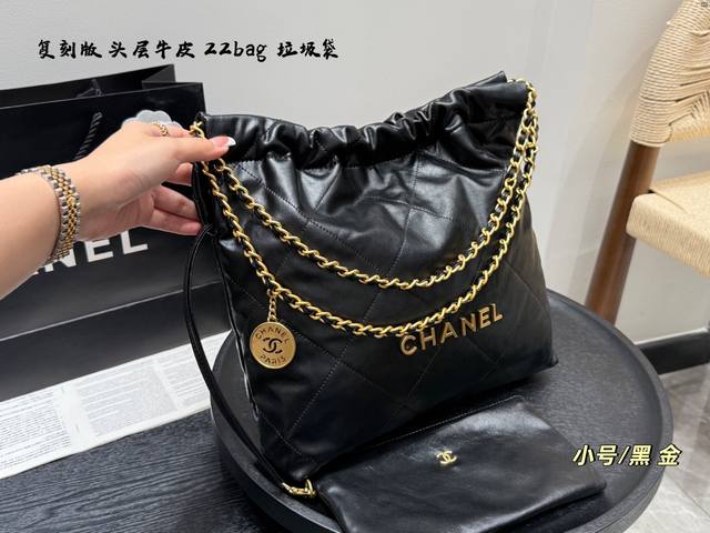 / 礼盒包装复刻版 原版皮尺寸32.35 小号 35.42 大号 香奈儿 24C 22Bag垃圾袋 Chanel 纯皮版 头层牛皮 链条设计随意感更加丰富外观简洁且