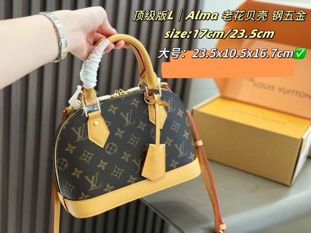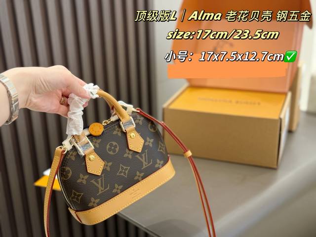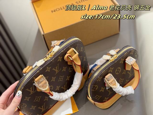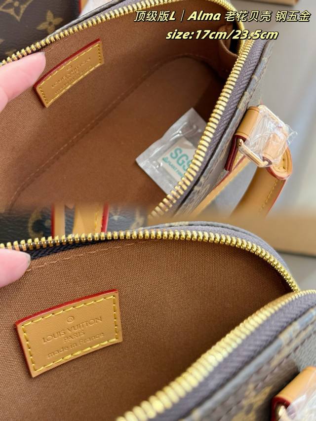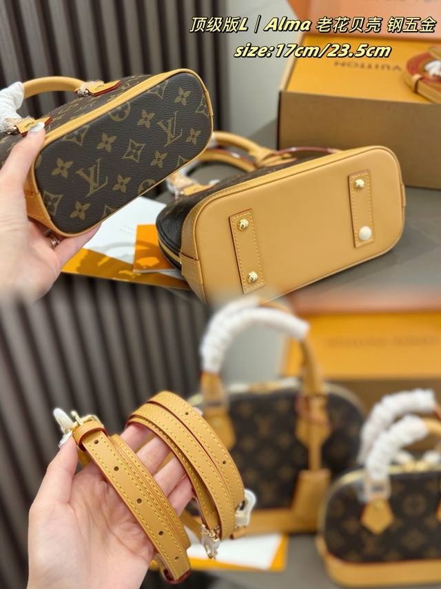 钢五金 顶级版双盒包装 牛皮Lv Alma 老花贝壳 钢五金“路易威登经典老花满印可拆卸肩带 涂层帆布拼牛皮饰边 植鞣皮处理 增加复古感且不容易变脏”1搭配性高:可手提可斜挎 自带斜肩带 有7个孔调节 小个子背也非常友好2尺寸精致风格年轻:搭配物品挂件 更加爱不释手3容量不废:可放下16Pro+粉饼+口红 基本日常出门的东西都够1925年 Coco Chanel女士让Lv为其定制了一款手袋 便是Alma的原型 后来这款包得到批量生产 是路易威登的经典手袋之一Chanel 女士作为时尚界的领军人物 她的品味