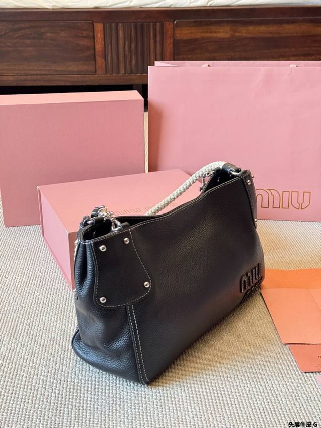 / 头层牛皮 美拉德色系麻绳编织Miumiumiumiu麻绳水桶包中古款Vintage实用性与趣味性兼具的一只美拉德系超级百搭满满的松弛感 款式可遇不可求尺寸 33