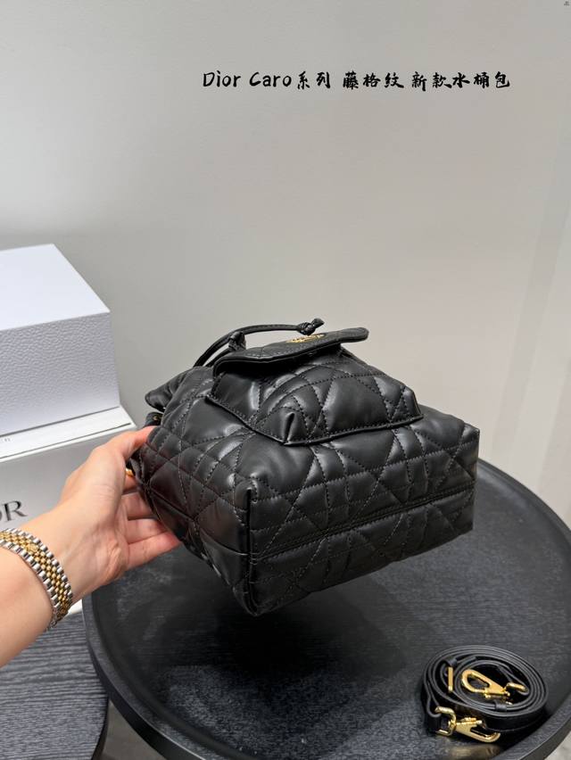 / 全套礼盒包装迪奥Caro系列 新品水桶包这款 Dior Caro 水桶包是二零二五秋季成衣系列新品,彰显时尚优雅风范。采用羊皮革等材质精心制作,饰以超大藤格纹缉