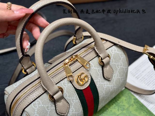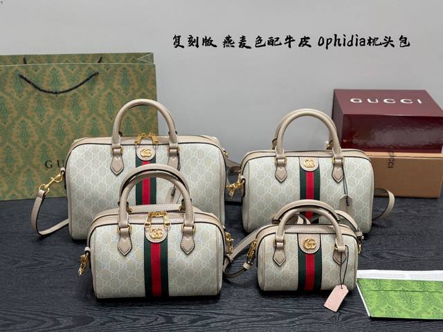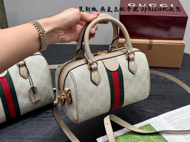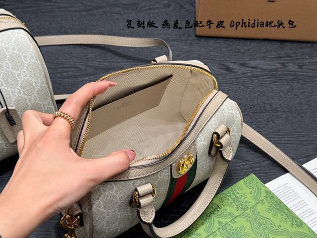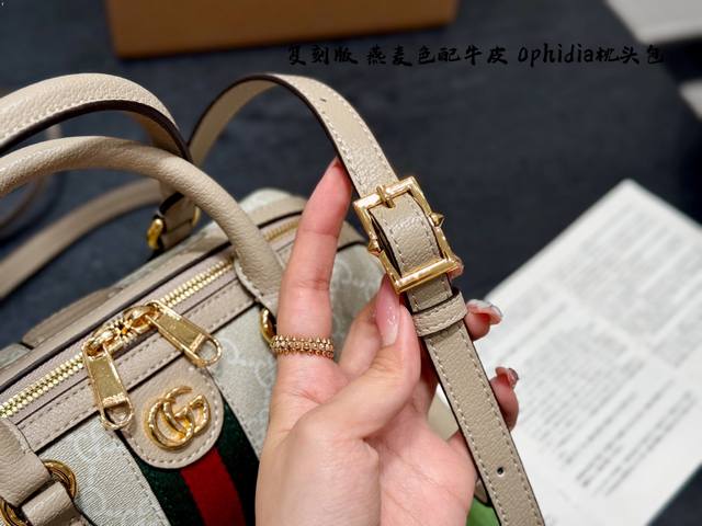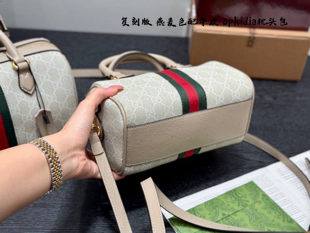 复刻版 原版布Gucci 牛皮Ophidia波士顿枕头包经典老花搭配牛皮面料容量充足 轻松收纳配有长肩带 肩带调节尺寸: 大30*19Cm 中25*17Cm 小21*14Cm 迷你17*10Cm