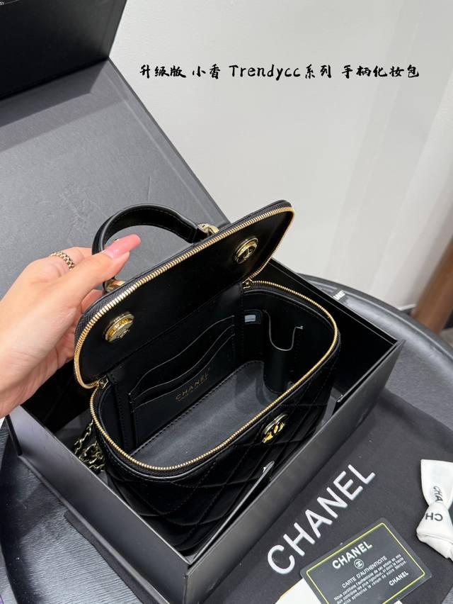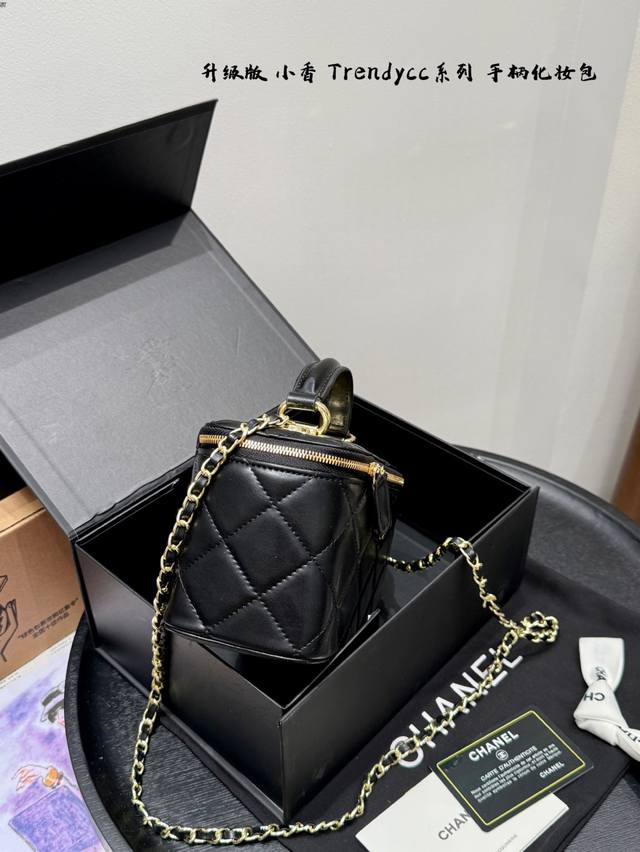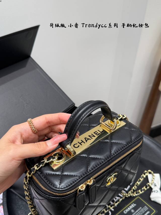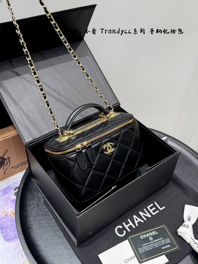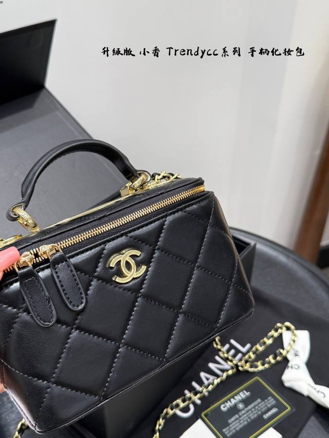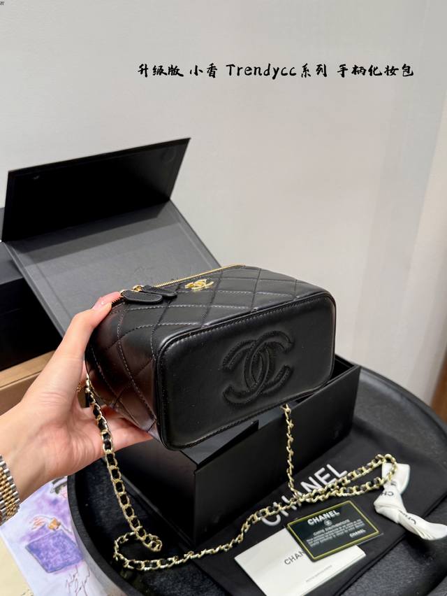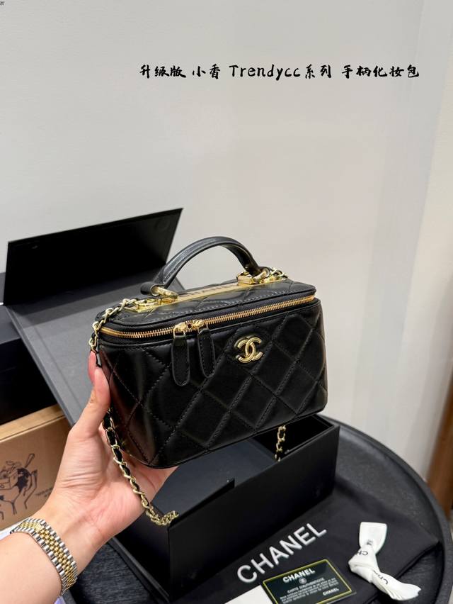 / 礼盒包装升级版Chanel香奈儿新款Trendycc系列手柄化妆包亮面金标菱格纹羊皮手柄长盒子包手提单肩斜挎包不含镜子尺寸18*10Cm