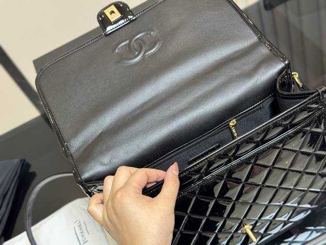 小号 香奈儿chanel 24A 新款抛光油蜡皮口盖包迷你链条包 尺寸18×12×5 礼盒包装