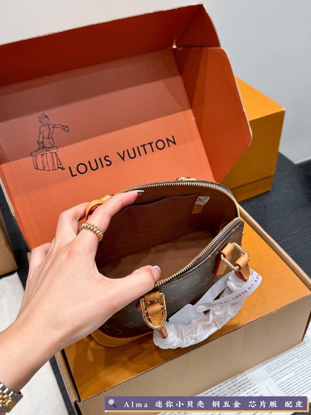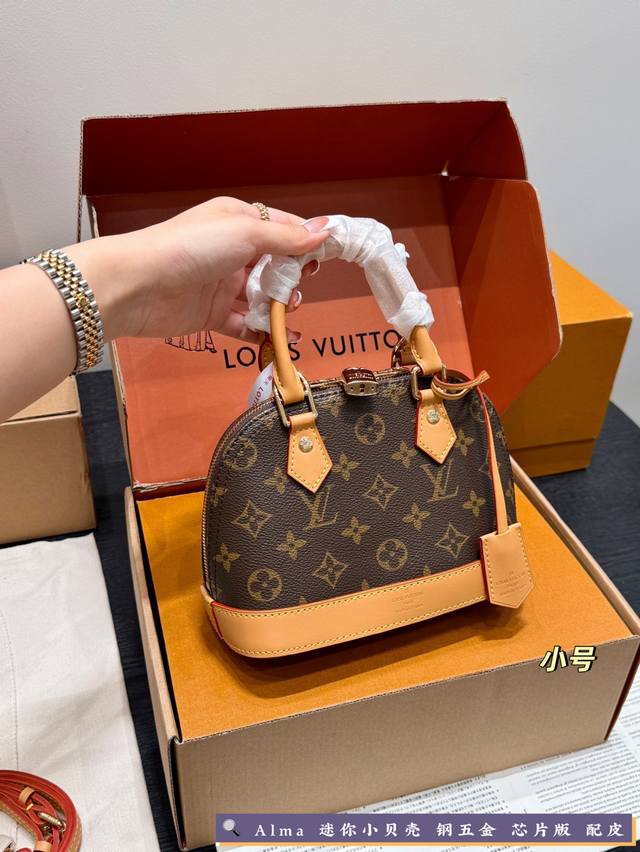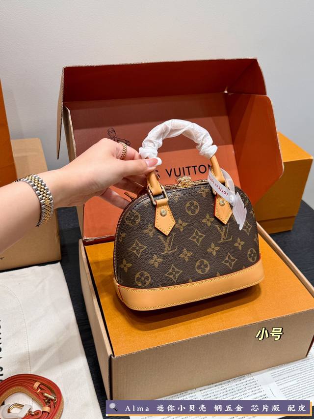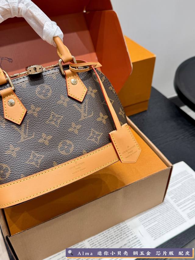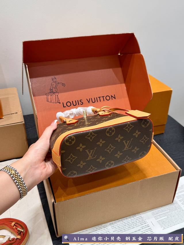 无底钉款 全套礼盒升级版 钢五金 Lv Nano Alma 小贝壳手提包经典永存的Lv贝壳包,一直受姐妹们喜爱,Mini款的贝壳包,真的很可爱~贝壳包包型优雅流畅,气质中略带可爱,可悠闲可甜美简直是老花中的天花板系列,容量很棒很能装,能塞下Pro Max迷你小巧的造型,不仅做到小巧美观且做到了大容量,日常必备的东西,妥妥的帮你收纳,小巧精致的小水桶俘虏了每个少女的心,爱了爱了,必须人手一只的节奏尺寸:迷你18*9*13Cm 小号21*15Cm