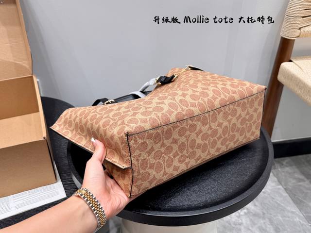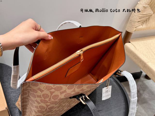 蔻驰 Coach Mollie 大托特包Tote单肩腋下包 菜篮子包包不大不小刚刚好,自重轻中间还有拉链隔层,可以手提可以斜挎实用性很高 不挑年龄随意背~尺寸:大33*27Cm
