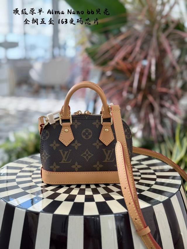 升级版163芯片M82717老花[Almanano贝壳手袋]用微型版本再现象征性的阿尔玛包的纳米阿尔玛。与天然皮革材质的装饰相协调的路易威登的签名Monogra