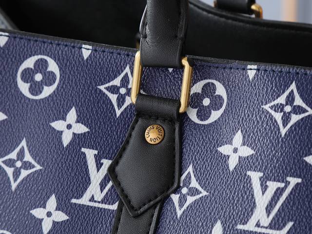 升级原版 M46451 M46812火焰蓝 手袋取材 手工喷绘和轻微褪色处理,随后压印 Monogram 图案。充裕容量结合平手柄和可调节肩背带。详细特征43 X 34 X 17.5 厘米 长度 X 高 X 宽