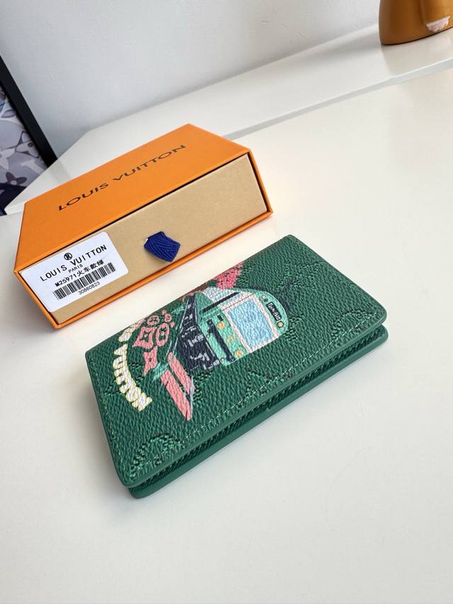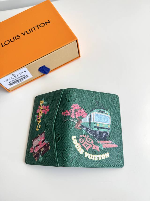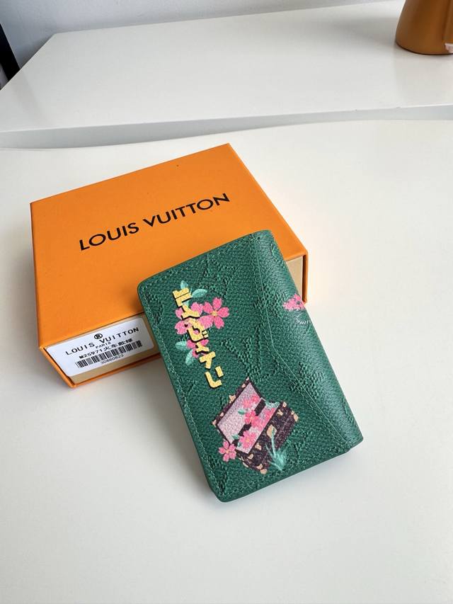 / 海外原单M25971火车绿色独家实拍!本款口袋钱夹以 Monogram 帆布包裹牛皮革内衬,再为缤纷和风图案融入路易威登标识,令经典设计流露别致气息。精巧构型囊