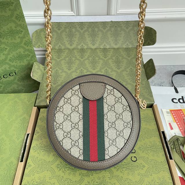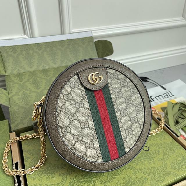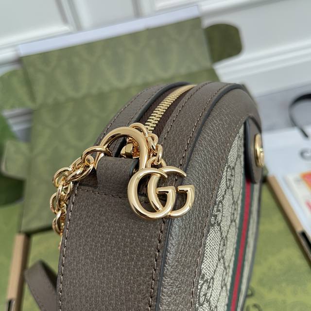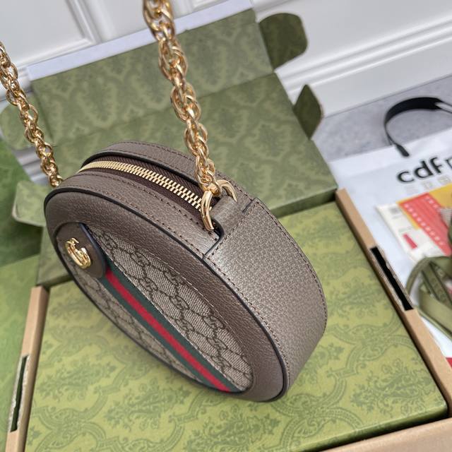 原厂皮跑量价 2018秋冬新品。Ophidia系列全新造型的圆形小包,造型精致小巧真的的超级好看,配色也延续了Ophidia系列非常高级,是这一季重点推荐的单品之一!型号:550618,颜色:棕胶 圆尺寸:18X18X4.5Cm。