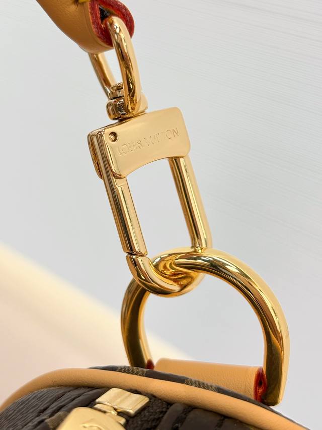 本款 Speedy Soft 30 Lucky 手袋为 Monogram 帆布勾勒 Vvn 皮革饰边 再借宛若珠宝的可拆卸装饰 撞色内衬和金属件点亮考究细节 充裕构型可轻松容纳平板电脑与日常所需 Size:30X21X17Cm