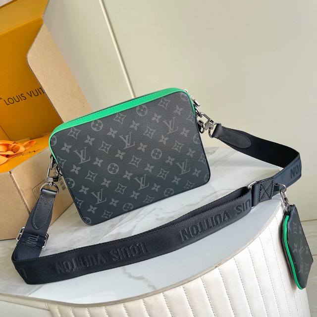 163C01芯片版 内部价P 款号: M26052 绿色 原单加强版 独家实拍背景图 新款男包三件套邮差包系列 本款 Trio 邮差包以 Monogram Ec