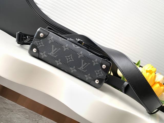 动态变码芯片 顶级原单加强版 M11743黑花 本款Soul Trunk手袋取材Monogram Dust帆布,以皮革和金属件的做旧质感映衬褪色Monogram花卉和Lv标识。加固包角,细腻缝线、皮革细节和Tumbler锁扣延续Pharrel Williams为Soul Trunk系列倾注的标志性元素。尺寸:19 × 15 × 7 Cm