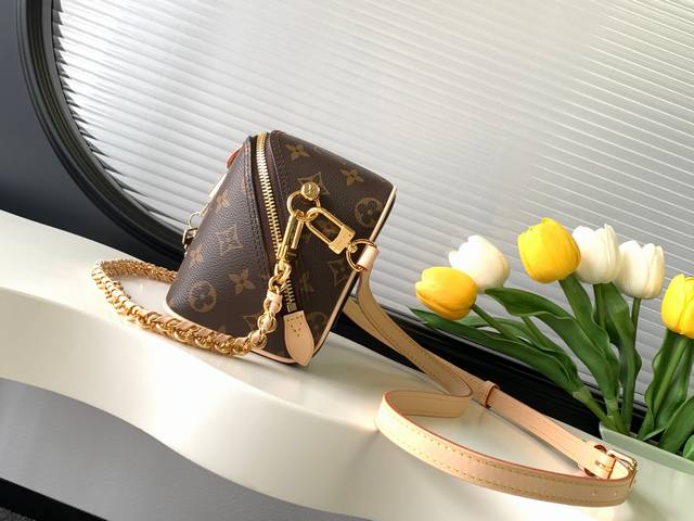 Just In Case 手袋回溯品牌旅行传承,以 Monogram 帆布和牛皮革饰边塑就紧凑构型,可容纳手机、钥匙、化妆品等日常所需。挂锁和钥匙包彰显经典细节,皮革编织链条和皮革肩带均可拆卸,随心切换摩登背携选择。