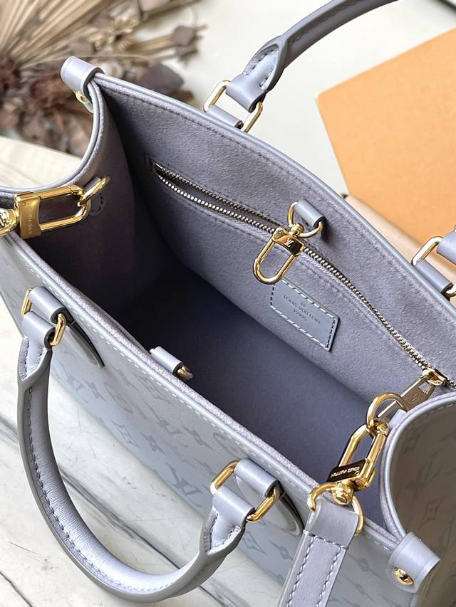 头层皮 顶级原单M12465 Monogram Ink系列Onthego小号手袋拥有光滑牛皮革的雾面质感,以包角的铆钉致意品牌经典硬箱设计。齐整内里设有大号拉链