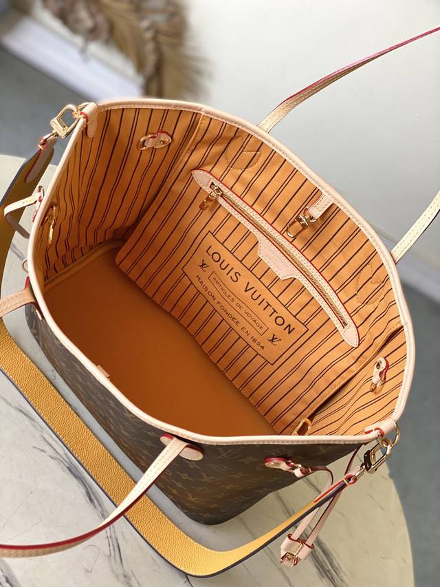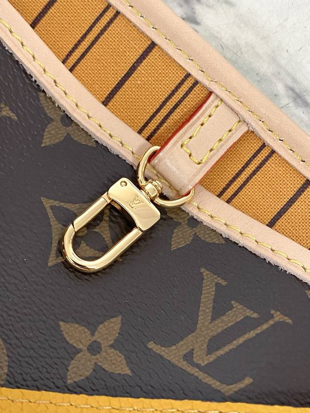 顶级原单 M11947 黄色 作为的经典设计之一,Neverfull Bandouliere Inside Out中号没有手袋此次取材Monogram帆布和条纹