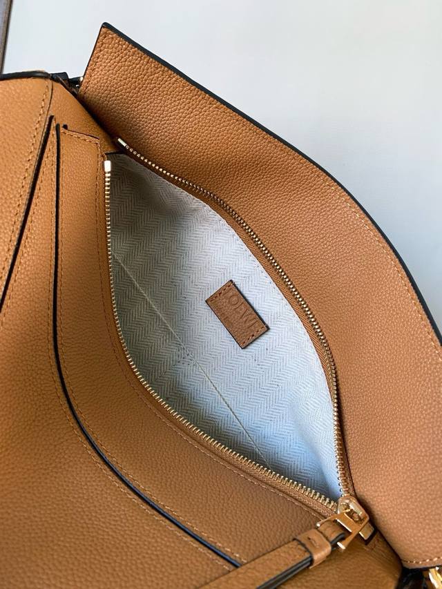 几何包29Cmpuzzle手袋~原厂进口荔枝纹牛皮 罗家爆款几何包Puzzle 手袋是创意总监乔纳森 安德森 Jonathan Anderson 为 L0Ewe 推出的首款手提包长方体形状和精确的切割技术创造了Puzzle 独特的几何线条简约大气的几何设计时髦中带着股酷劲,可甜可盐原厂小牛皮 包型都不变型手感舒适得没话说上身气质立马Up~立体包型还蕴藏着非凡的容量是永远都囤不够的热门单品!