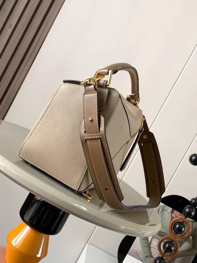 几何包29Cmpuzzle手袋~原厂进口荔枝纹牛皮 罗家爆款几何包Puzzle 手袋是创意总监乔纳森 安德森 Jonathan Anderson 为 L0Ewe 推出的首款手提包[蛋糕][蛋糕]长方体形状和精确的切割技术创造了Puzzle 独特的几何线条简约大气的几何设计时髦中带着股酷劲,可甜可盐原厂小牛皮 包型都不变型手感舒适得没话说上身气质立马Up~立体包型还蕴藏着非凡的容量是永远都囤不够的热门单品!