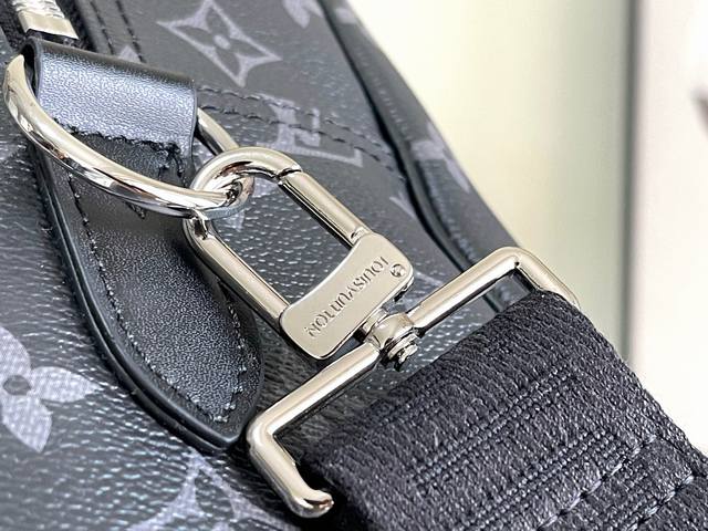 本款 Weekender手袋以Monogram Eclipse帆布塑造合宜尺寸,可通过背面饰带轻松固定于Horizon 拉杆箱顶部。俊朗设计囊括前袋、内袋和后袋,多种背携选择便于手提、肩背或斜挎随心切换。尺寸:46 X 31X18厘米
