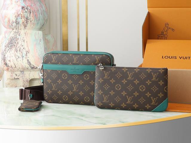 / 顶级原单 独家实拍 M12766绿色老花 M69443男包三件套邮差包系列 Trio 邮差包 本款 Trio 邮差包以 Monogram Eclipse Rev
