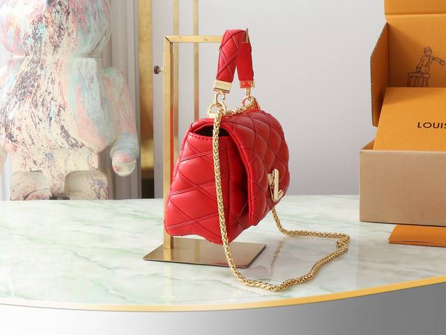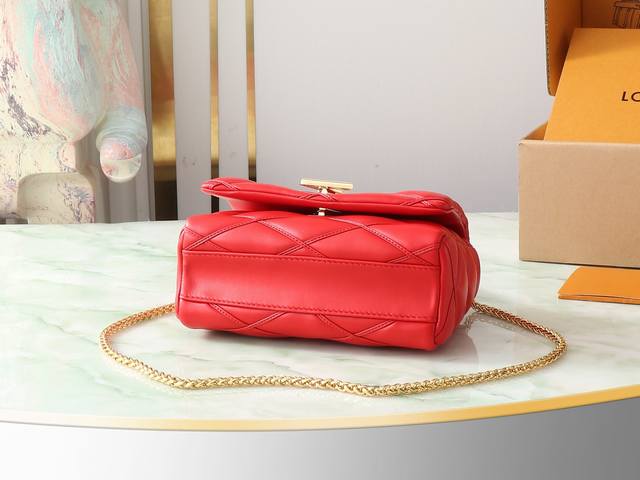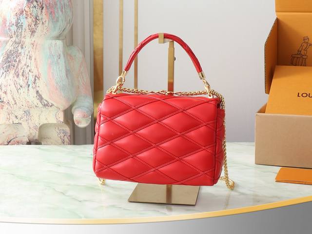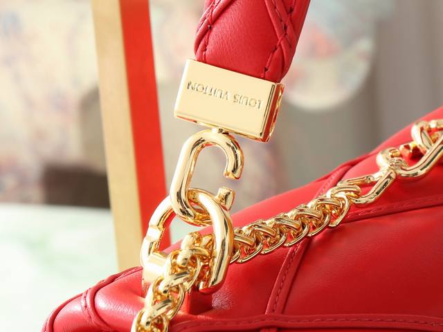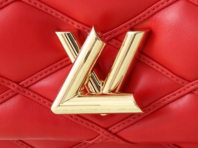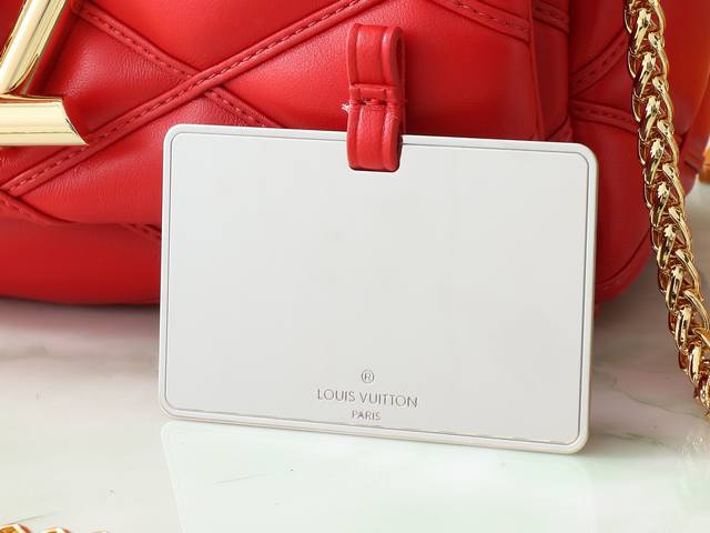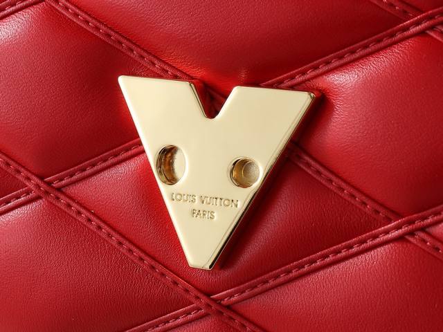 顶级原单 独家实拍 M25106 红色 全皮菱格链条包系列 Go-14 Teist 中号手袋 M25106 M22891 本款 Go-14 中号手袋取材华美羊皮革,以绗缝图案致敬品牌传统行李箱设计。Lv Twist 扭锁彰显瞩目风范,顶部手柄可单独手提,亦可化为滑链肩带的皮革肩垫,实现舒适肩背或斜挎体验。尺寸:23 X 16 X 10 厘米。