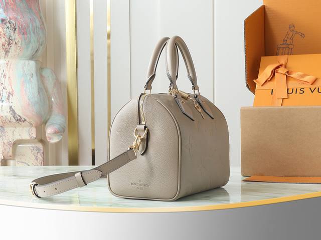 顶级原单 独家实拍 M59273灰色 全皮压花Soeedy枕头包 Speedy BandoulièRe 25手袋 M58947。 这款标志性的Speedy Ba