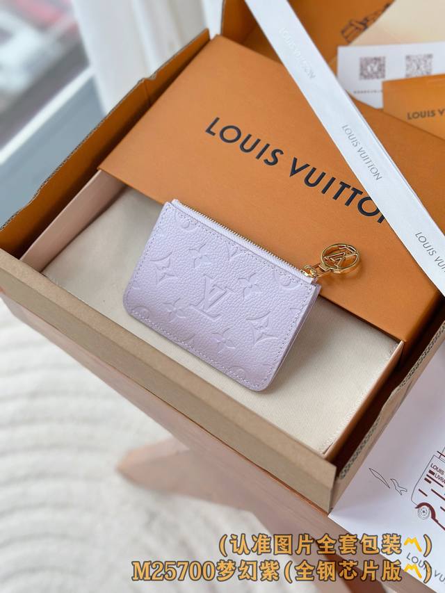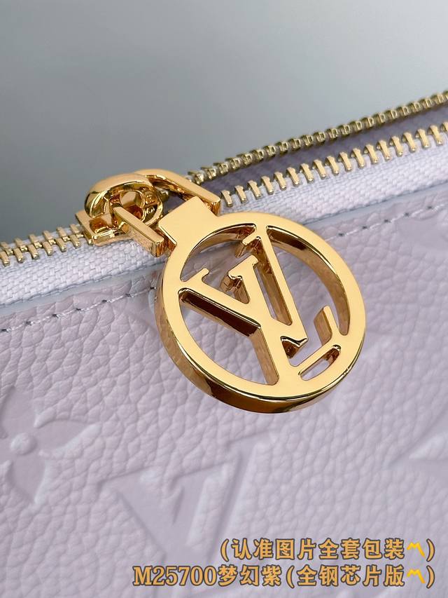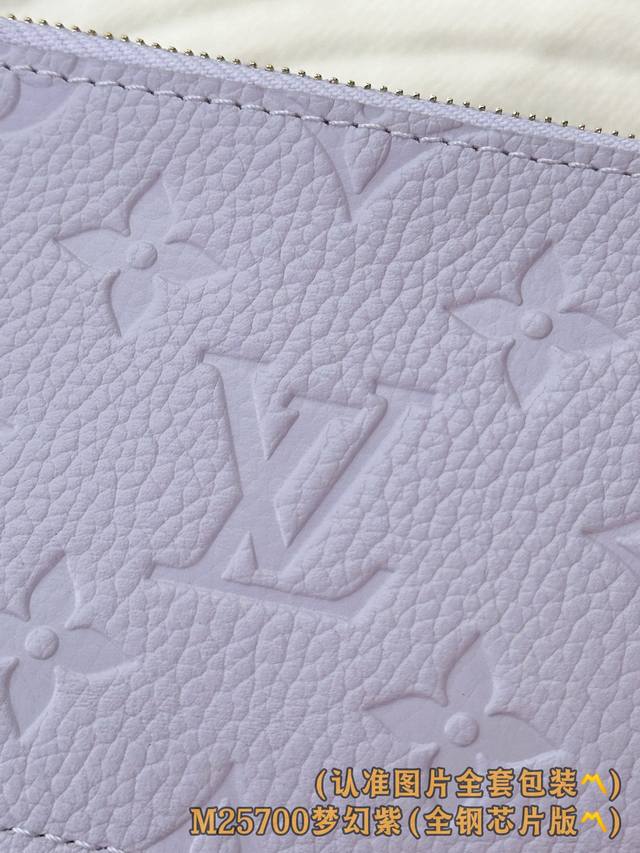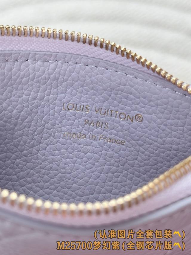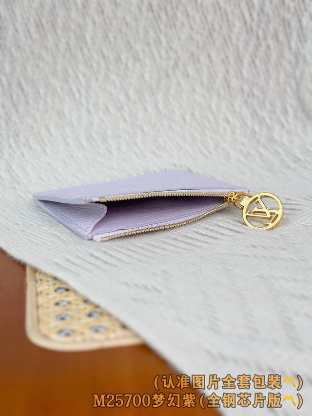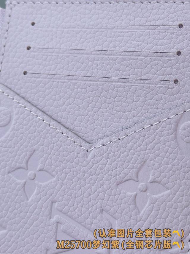 M25700 梦幻紫!Romy 卡片套 A级全钢 个性化定制版!163变码芯片、 全部采用进口牛皮材料制作、皮质手感非常细腻柔软! 這款Romy卡片套今季以時尚的粉彩風格展現活潑的全新演繹,靈感源自路易威登的典藏設計,採用標誌性Monogram Empreinte皮革製作,並配襯金色金屬件。這款實用的卡片夾設有三個名片夾層及兩個口袋,其中一個口袋備有拉鏈,便於穩妥收納零錢。