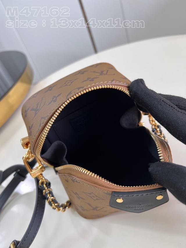 顶级原单 独家实拍 M47162黄花 這款 春夏系列的Just In Case手袋由設計師Nicolas GhesquièRe以嶄新而時尚的華麗元素重新演繹路易威登旅遊傳統,設計採用Monogram Reverse帆布打造。這款必備的出遊配飾以小巧尺寸結合路易威登細節設計,適合攜帶較小型配飾,讓女士出遊更顯個性。13 X 14 X 11.5厘米 長度 X 高度 X 闊度 Y