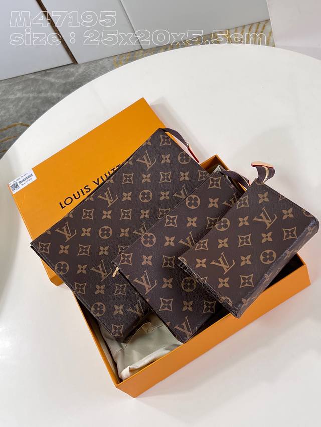 / 顶级原单 独家实拍 M47195 Trio 盥洗袋为 Monogram 帆布搭配明丽可水洗内衬,再以莹亮金属件点睛工致细节。25 X 20 X 5.5厘米 长度