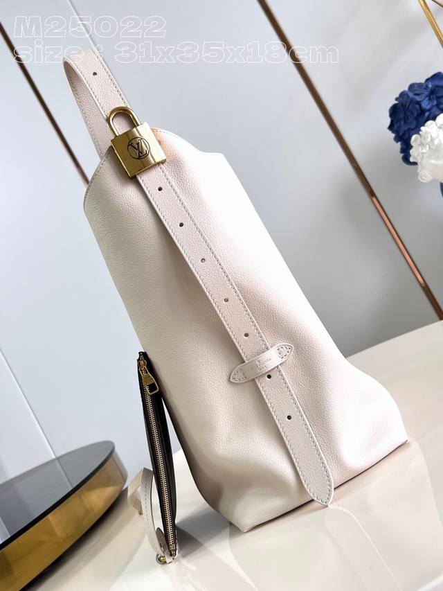 顶级原单 独家实拍 M25022白 本款 Low Key Hobo 中号手袋以柔软牛皮革勾勒简雅线条,搭配绒面内衬释放潮流气息,尽显品牌精湛匠艺。可调节肩带点缀经典铭纹挂锁,充裕空间可轻松收纳笔记本电脑等日常所需。31 X 35 X 18厘米 长度 X 高 X 宽 Y