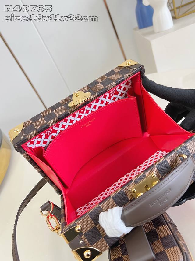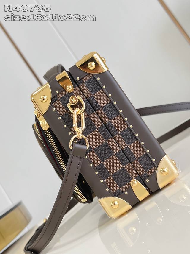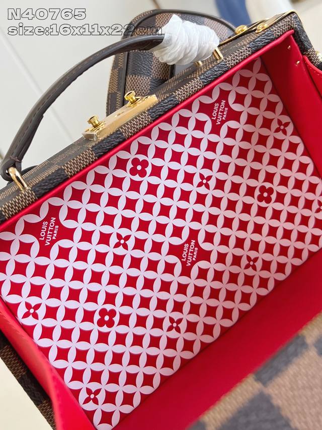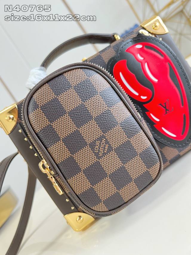 顶级原单 独家实拍 N40765 Sawagani Trunk 手袋取材 Damier Phriendship 帆布,致敬 Pharrell Williams 与日本设计师 Nigo 的长久合作。Sawagani 源自日语,指一种兼具硬壳与软壳的日本螃蟹。双面设计为一面描绘 Pharrell 与 Nigo 的肖像图案,另一面点缀玩趣口袋。内衬巧妙融合 Monogram 花卉与日本传统七宝编织工艺,展现 Nigo 的别致创作视角。16 X 11 X 22 厘米 高 X 宽 X 长度 P.