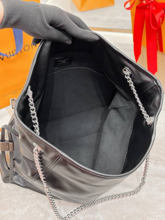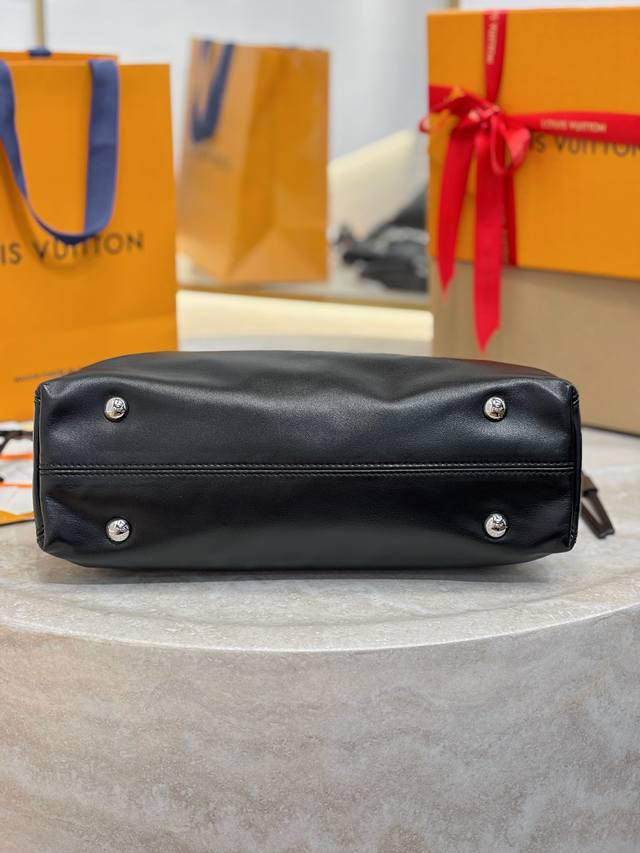 Off Duty 中号手袋出自 L*Vibe 系列 可为各式造型注入前卫摇滚风范 羊皮革包身配有莹泽金属件 L*Circle 标识栖身一侧 Size:33X24X11.5Cm