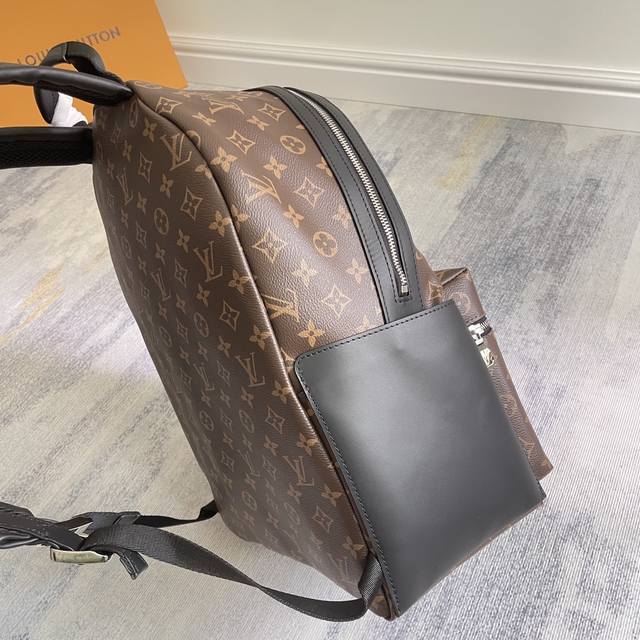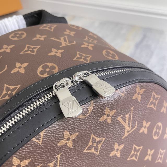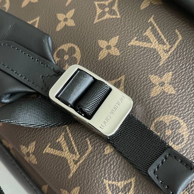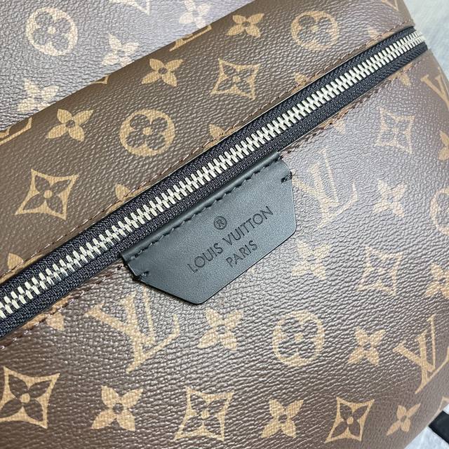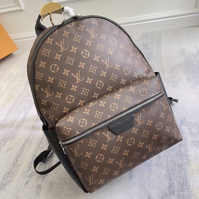 M22545中号本款 Discovery 中号双肩包以 Monogram Eclipse 帆布和金属件彰显俊逸风范。前袋方便取放随行物品,内袋和双拉链开合确保收纳稳妥有序,可调节皮革肩带实现舒适背携。31X42X17Cm