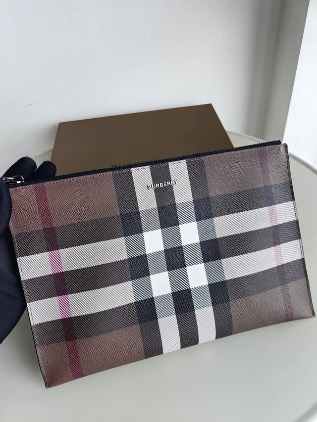 / 下单让利80 巴宝莉 Burlondon 格纹拉链收纳袋 采用进口粒面小牛皮,纤巧的版型可轻松置于公文包或旅行包内,并可轻松容纳平板电脑 ,实物拍摄,新灰格子